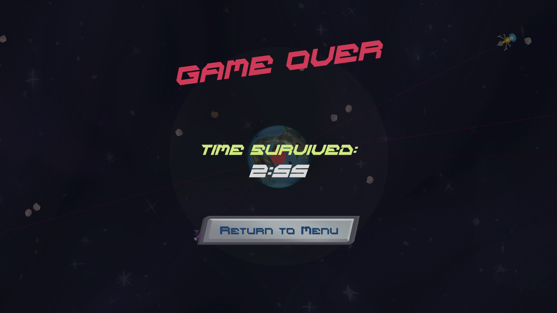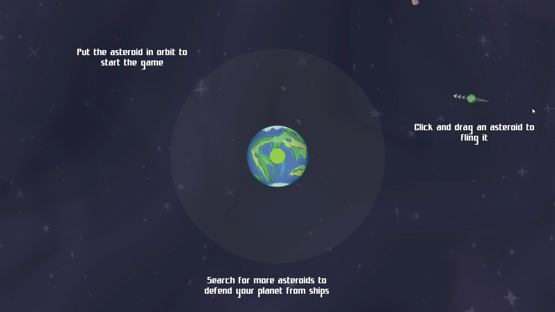 Survive the most time by putting asteroids in orbit to shield it from the ships. You can also hit the ships with a direct hit.